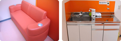 室内設備:ベビーベッド、ソファー、浄水器、洗面台、ごみ箱